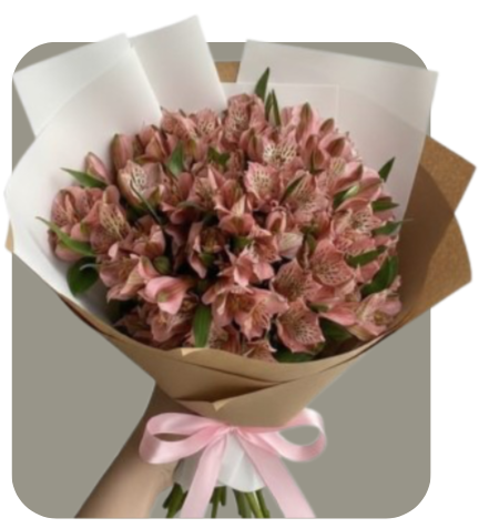 Ramo compuesto principalmente por alstroemerias rosadas. Las flores se acompañan de follaje verde intenso, que realza el color suave de los pétalos y da contraste natural.