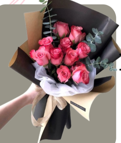 Este es un arreglo de carácter vanguardista y sofisticado, protagonizado por un ramo de rosas en tono rosado acompañadas de ramas de eucalipto. Destaca por su envoltorio de capas en papelcoreano negro y kraft, que crea un contraste moderno y elegante. El diseño se finaliza con un listón de color crema , aportando un toque rústico que equilibra la intensidad de las flores